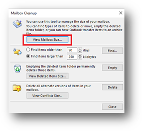 8. Additionally, try deleting emails that are older, such as any emails that are 90 days or older. After doing this, empty your deleted items folder again.